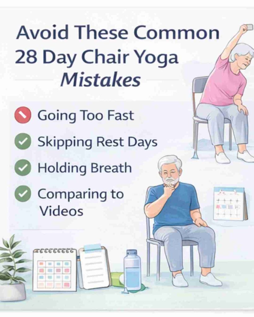 Follow the complete 28 day chair yoga challenge with a safe daily plan, printable charts, scientific support, and mistakes most seniors should avoid. 28 Day Chair Yoga Challenge (Safe, Simple & Senior-Friendly)