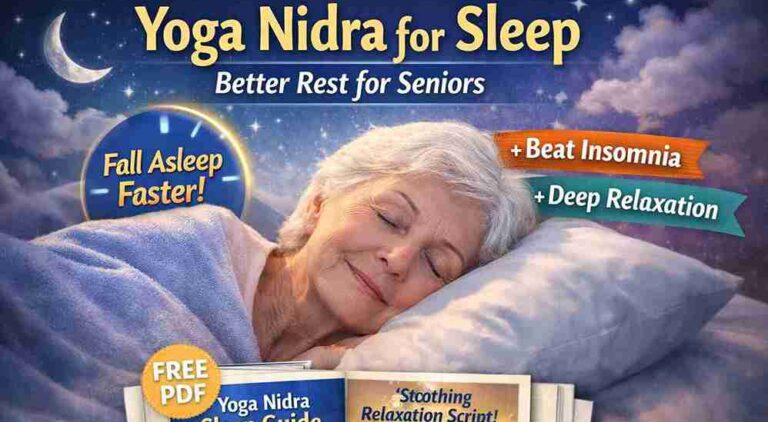 Discover how yoga nidra for sleep helps seniors fall asleep faster and improve deep sleep naturally. Science-backed guide with step-by-step routine and free printable PDF script. Yoga Nidra for Sleep: The Gentle, Science-Backed Solution Helping Seniors Fall Asleep Faster Naturally
