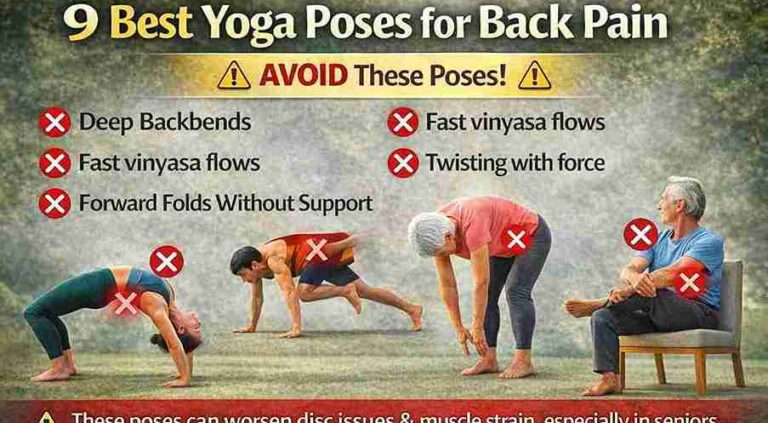 Looking for the best yoga poses for back pain? Discover science-backed yoga poses that relieve lower and upper back pain safely. Avoid harmful mistakes and download our free printable PDF guide. Best Yoga Poses for Back Pain (Safe, Science-Backed Relief)