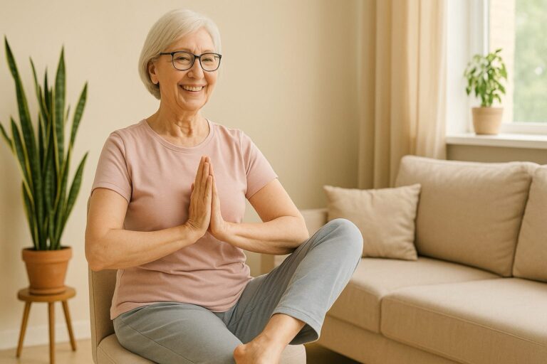 Simple, safe & pain-free chair yoga routines designed for seniors 60+. Improve mobility, balance, and daily comfort at home.